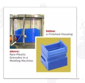融化的塑料在模具里冷却并凝固。最后以一个完整的塑壳被拿出。