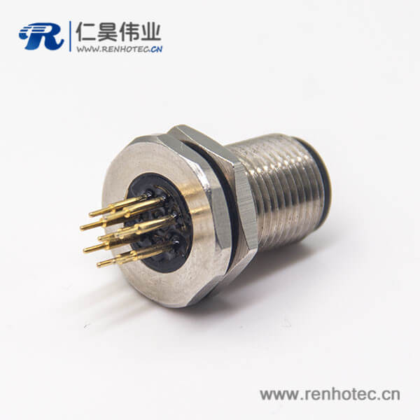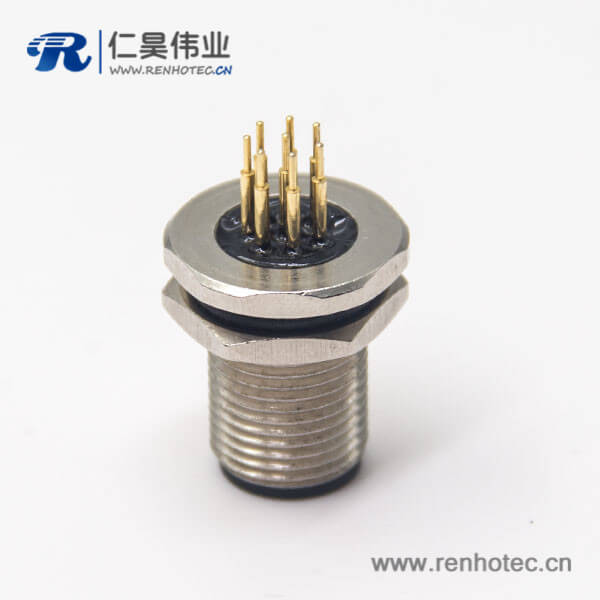 标签:M12,板端插座,A编码,8芯,直式,公头,前锁板,面板安装,插PCB板安装