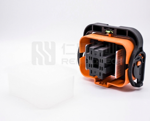 这个迷你的手动服务断开(mini MSD)用于充电插电式混合动力汽车(PHEV),并具有高压联锁回路(HVIL)。该插头具有两级杠杆,用于在高压触点分离之前打开高压电路。