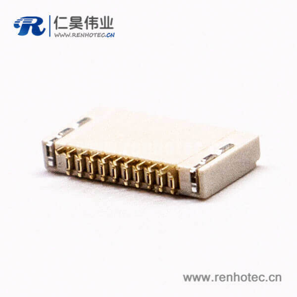 料号:RHT-616-0121 标签:ffc/fpc插座,0.5mm,10pin,前掀盖式,下接触,1.5H,焊接,接PCB板 产品特点: