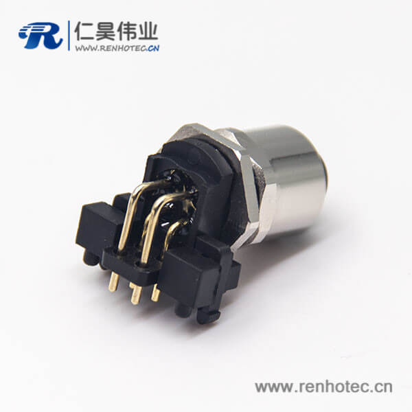 料号:RHT-634-1155 标签:M12,板端插座,A编码,4芯,弯式,母头,穿墙,插PCB板安装