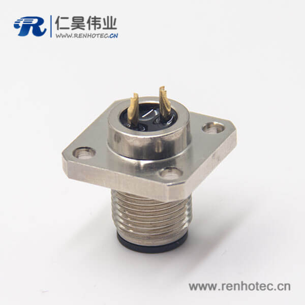 料号:RHT-634-1185 标签:M12,板端插座,A编码,2芯,直式,公头,4孔法兰,面板安装