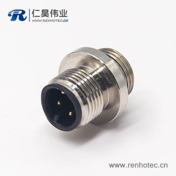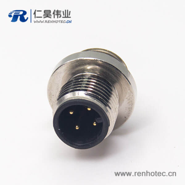 料号:RHT-634-1187 标签:M12,板端插座,A编码,4芯,直式,公头,后锁板,面板安装,焊线式
