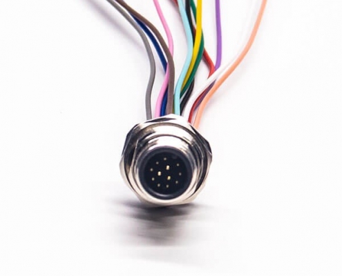 M12 12芯焊线插座A扣公头带屏蔽前锁板M15*1 电线 AWG26 30CM