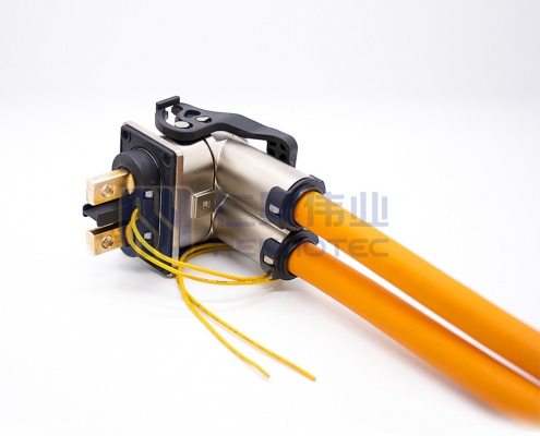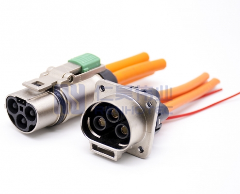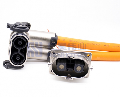 HVIL高压互锁阿联酋vs丹麦亚盘 2芯6mm金属弯型125A插头和插座U键位接25平方线