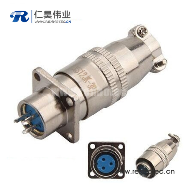 3芯 航空插头 XS12 反装母头法兰插座公插头套装